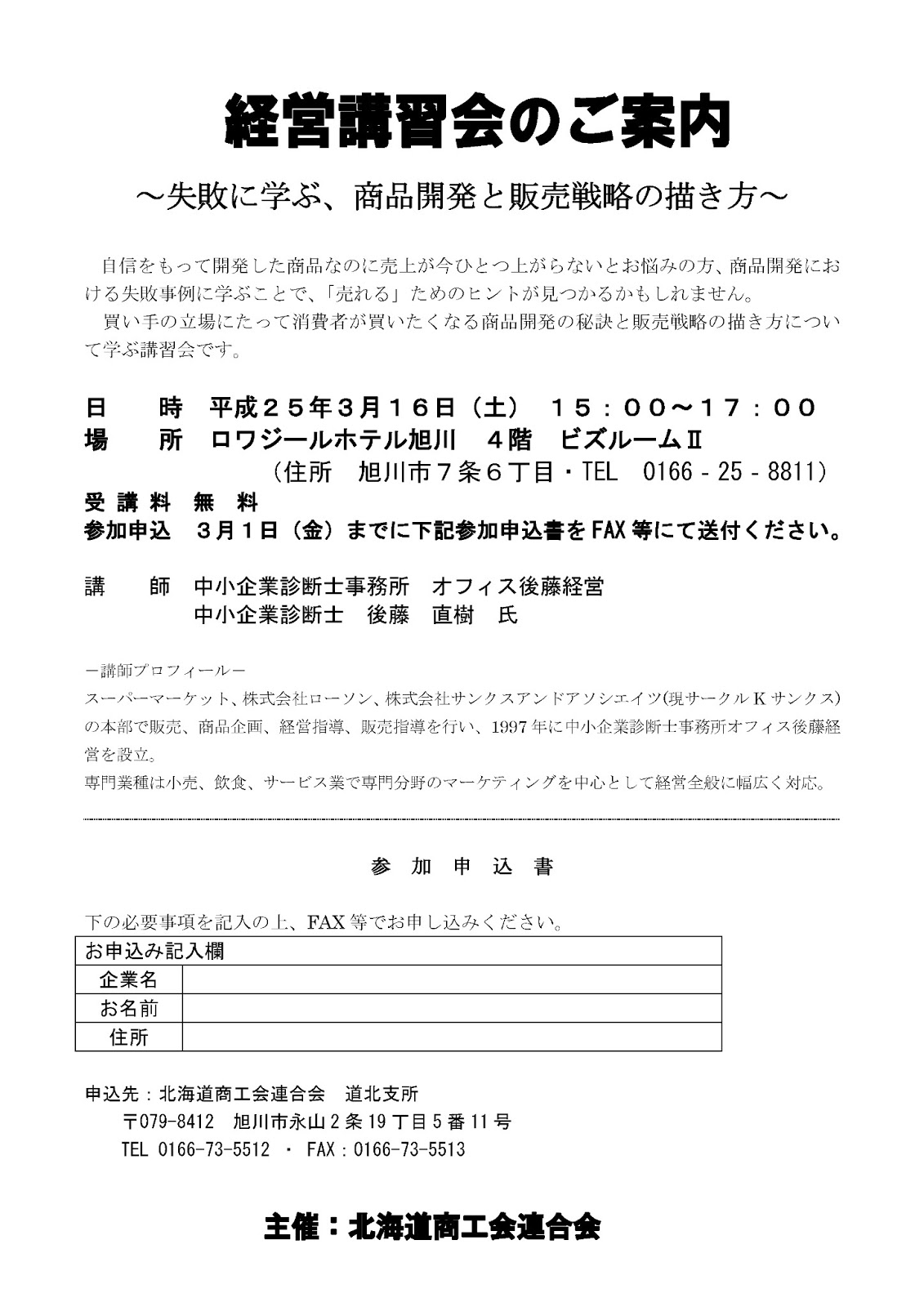 2013年3月16日開催「経営講習会」のご案内(申込3月1日まで)