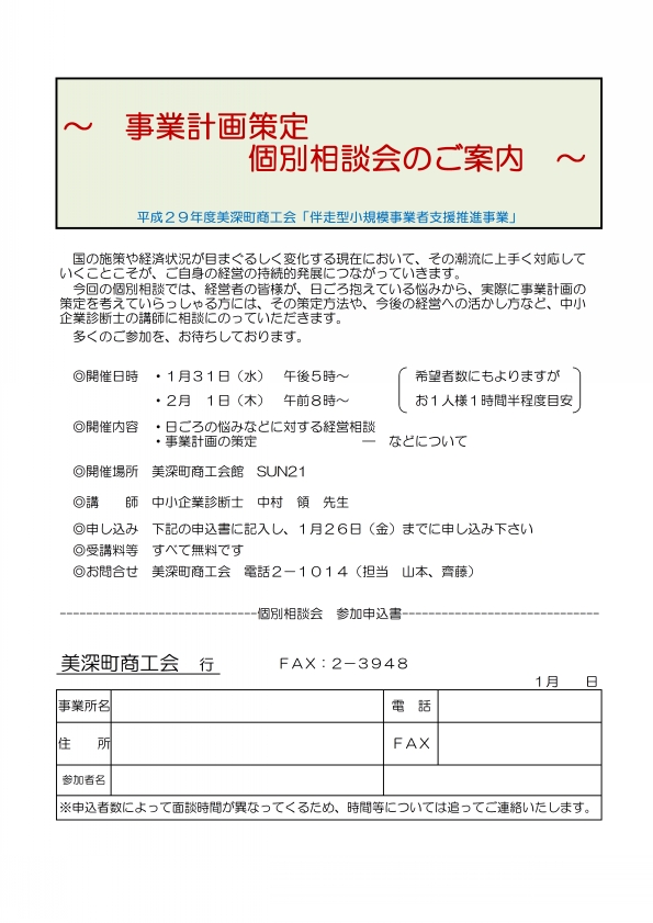 【事業計画策定に関する個別相談会実施のお知らせ】